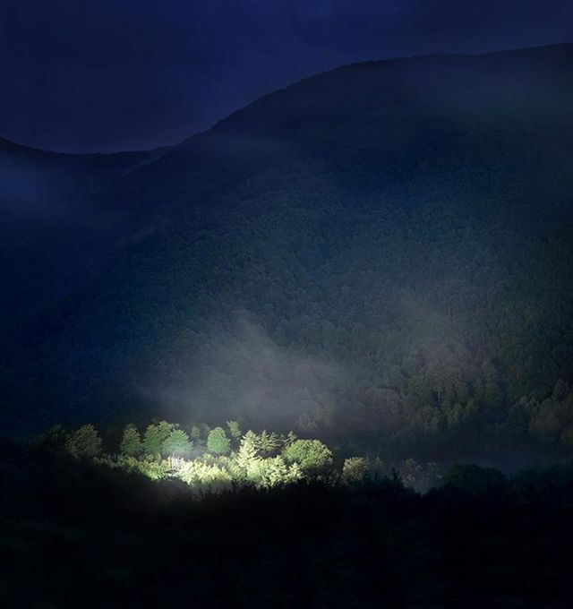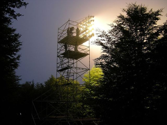 Carlos Irijalba: Ich sehe „Twilight“ nicht als isoliertes Projekt. Es gehört zu einer Werkreihe, die in den vergangenen sechs Jahren entstanden ist. Man könnte sagen, "Twilight" ist das Fazit oder der Abschluss von früheren Projekten wie "Devices" oder "Outside comes First". Das Konzept soll aufzeigen, wie wichtig das Licht in der westlichen Kultur für die Erschaffung von Realität ist, und wie es die Realität lenkt und definiert. Licht ist für mich eine Quelle der Aufmerksamkeit: Im Stadion konzentiert sie sich auf einen einzelnen Platz, die Mitte der Arena. Ich nehme das Licht und damit auch die Aufmerksamkeit von dort weg und platziere sie stattdessen in einem Wald - einem eher merkwürdigen Platz für ein Spektakel.