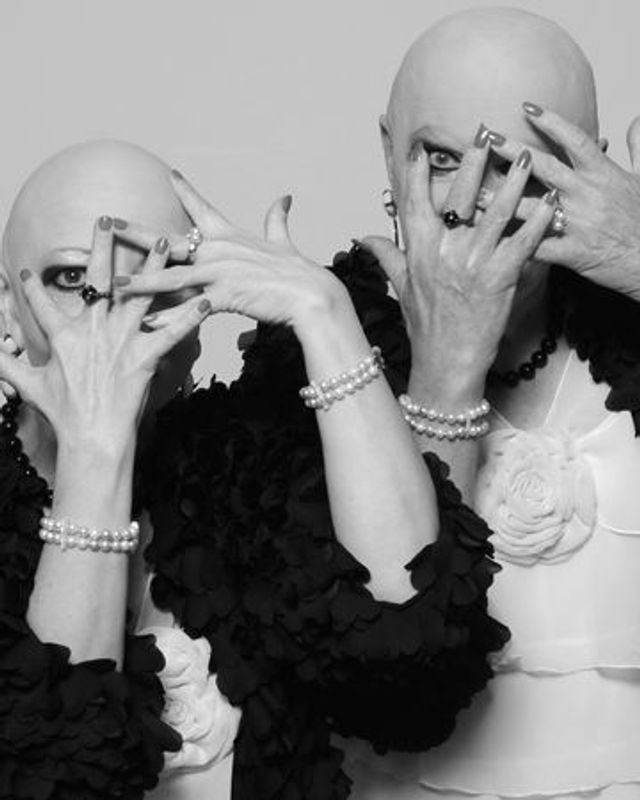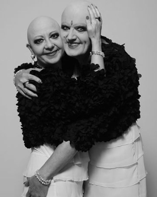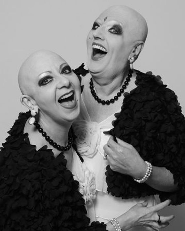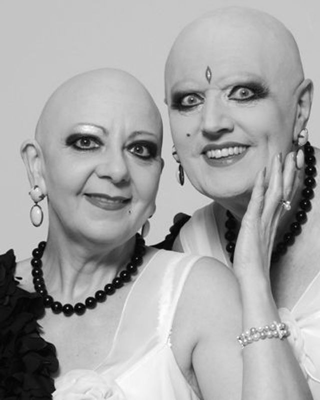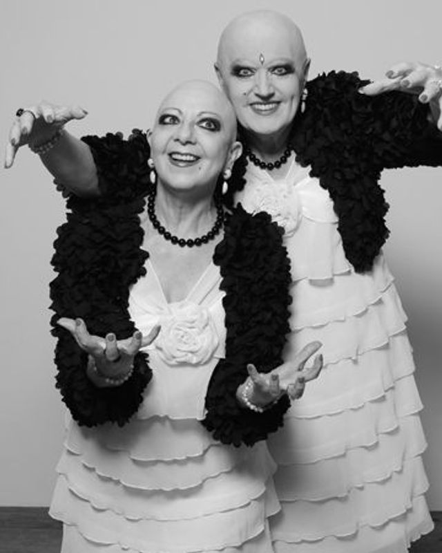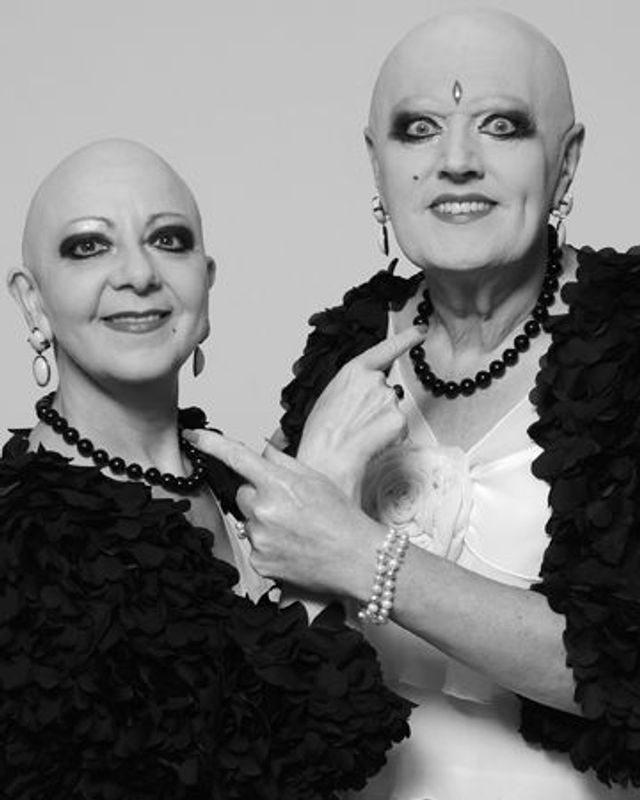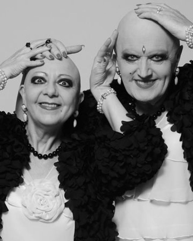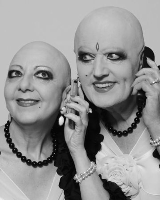 Seit ihrem ersten öffentlichen Auftritt 1988 gibt es Eva & Adele nur im Doppelpack; mit gepudertem Glatzkopf, Damenkostüm und Stöckelschuhen produzieren sie Bilder, Fotografien, Videos und Performances – die kompromissloseste Verschmelzung von Leben und Kunst seit Andy Warhol oder sagen wir: Gilbert & George. In der Galerie Martin Mertens in München zeigen Eva & Adele noch bis Ende Oktober einen Teil ihrer Arbeit.