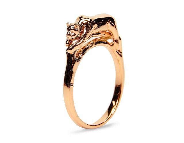 Ihr Schmuck ist von fast barockem Überfluss und großem Detailreichtum. Über Ihre Ringe kriechen Schlangen und Leoparden, man kann einen Haken öffnen und einer Waldnymphe ins Auge schauen.