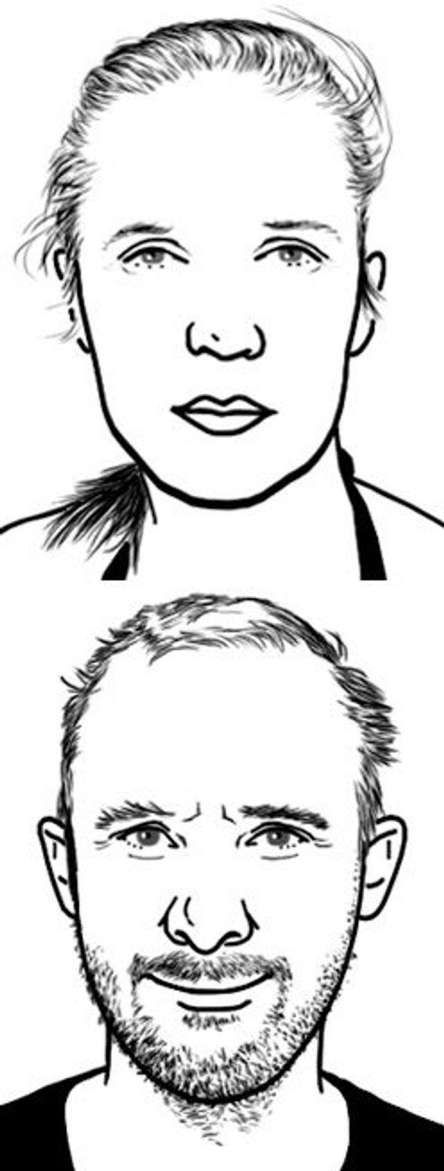 Umzug-Ritter in Aktion - der linke ist bewaffnet mit einer Klemmleuchte von Hay, einem schwarz-weißen »Fancy Finger Pillow« und einer bunten »Bobby Blanket« von Luckboysunday, der rechte tarnt sich mit der weißen Tischleuchte »Eraser« von Stefan Kehrle für Moree, dem Papierkorb »Bow Boon« für Cordula Kehrer und einem blau-weißen »Fancy Finger Pillow«.