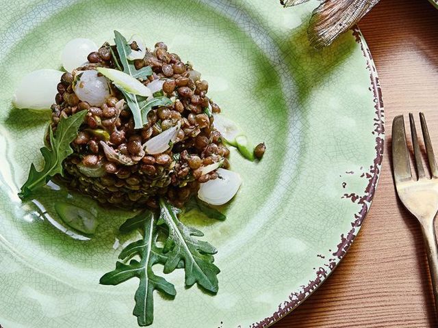 Linsen sind wunderbare Eiweiß- und Vitamin-Lieferanten. In diesem nussig-würzigen Salat kombiniert unser Koch die warmen Hülsenfrüchte mit Rucola, Perlzwiebeln, zweierlei Senf und Honig.