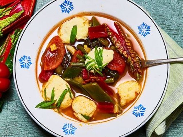Die Farben dieser Gemüsesuppe erinnern an die Flagge Italiens. Nicht ganz unpassend, denn Klößchen aus italienischem Ricotta sind das Ass im Ärmel dieses Rezeptes.