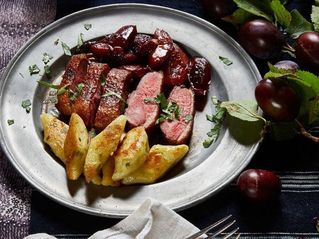 Entenbrust mit Zwetschgen-Ragout und Gnocchi
