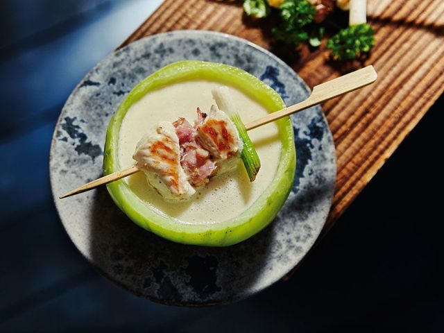 Egal ob blau-violett oder grün-weißlich, Kohlrabi gilt als typisch deutsches Gemüse. Wie sich aus der Knolle eine feine Suppe zubereiten und mit einem Poularden-Spieß garnieren lässt, verrät Christian Jürgens.