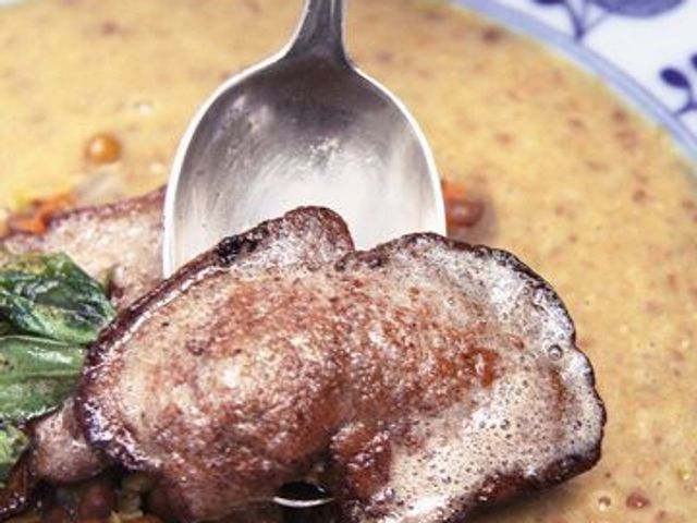Für Goethe war die grüne Soße ein Gedicht. Unser Koch Christian Jürgens hat dem nichts hinzuzufügen. Außer vielleicht Filoteig, Pinienkerne und ein wenig Speck.
