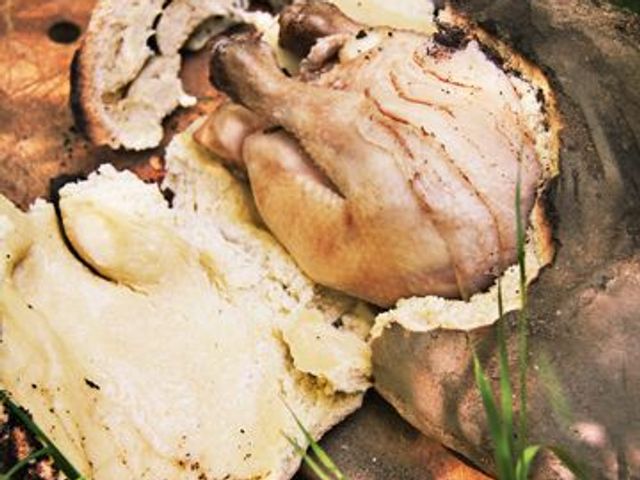 Ein Gockel ohne Würze ist kein richtiger Gockel, daher gart dieser im Salzteig. Ein Rezept, das im Backofen und am Lagerfeuer funktioniert.