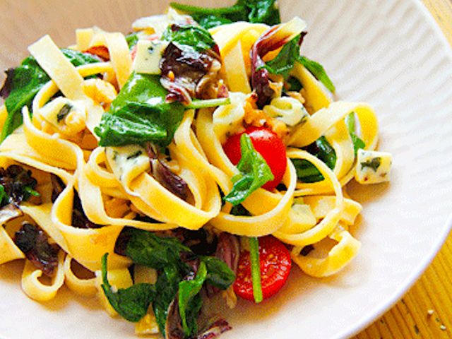 Kichererbsen-Nudeln mit Blauschimmelkäse