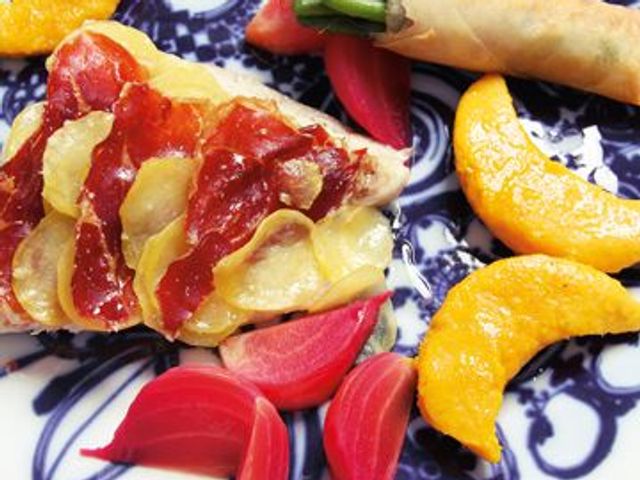 Kalbskotelett mit Rucola-Tomatenfüllung und Ziegenkäse