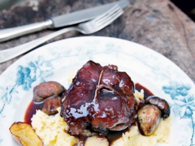 Geschmorte Kalbsbacken mit Kartoffel-Petersilien-Püree