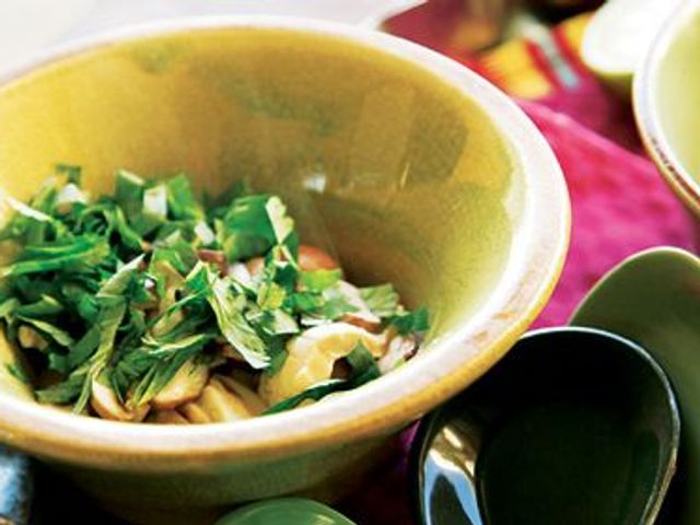 Cremiger Muntermacher mit Chili, Zitronengras, Thai-Ingwer und Koriander.