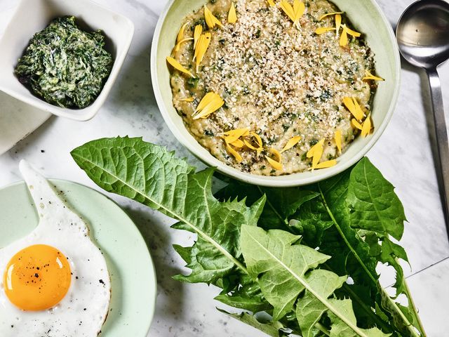 Drei tolle Dinge am Löwenzahn: Er ist leicht zu finden. Wenn man seine Blüte in alle Himmelsrichtungen pustet, soll er Wünsche erfüllen. Und man kann mit den Blättern diese cremig-nussige Polenta kreieren.