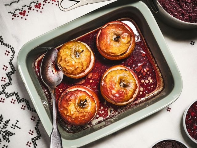 Wenn es draußen kalt ist, braucht es Gerichte, die von innen wärmen. In dem Rezept unserer Kochkolumnistin heizt nicht nur der Bratapfel, auch der Rotweinreis taut gefrorene Glieder auf.