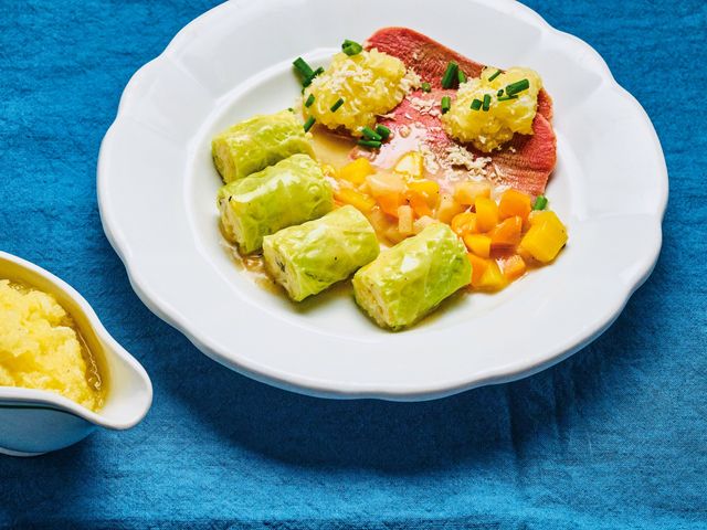 Kalbszunge mit Wirsingrollen und Apfelmeerrettich