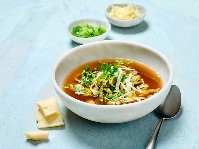 Fast jedes Stückchen Gemüse, das beim Schnippeln übrig bleibt, eignet sich für eine Gemüsebrühe, findet Hans Gerlach. Aus seinen Resten bereitet er deshalb eine kräftige Brühe, lässt Flädle darin baden und krönt sie mit Parmesan. So kann man gleichzeitig genießen und etwas gegen Lebensmittelverschwendung tun.