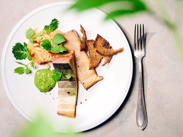 Kein Räucherschrank, kaum Aufwand: Um sein japanisches Makrelenfilet zu räuchern, braucht Hans Gerlach nur ein Stück Holzkohle, Räuchermehl – und 15 Minuten Zeit. Mit eingelegtem Kohlrabi und Liebstöckel-Mayonnaise wird daraus ein leichtes Abendessen.