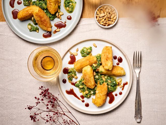 Hans Gerlach präsentiert sizilianische »Baduzzi« als Zwischengang seines Weihnachtsmenüs. Risotto-Reste vom Vortag verwandeln sich hier in ein elegantes Intermezzo. Auch die Sauce lässt sich hervorragend vorbereiten.