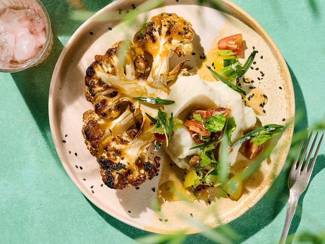 Ein kohlossales Steak! Zu Blumenkohlscheiben aus dem Ofen serviert Hans Gerlach die Würzsauce Salmoriglio. Mit dabei auch: Oregano – eines der wenigen Kräuter, das getrocknet aromatischer ist als frisch.