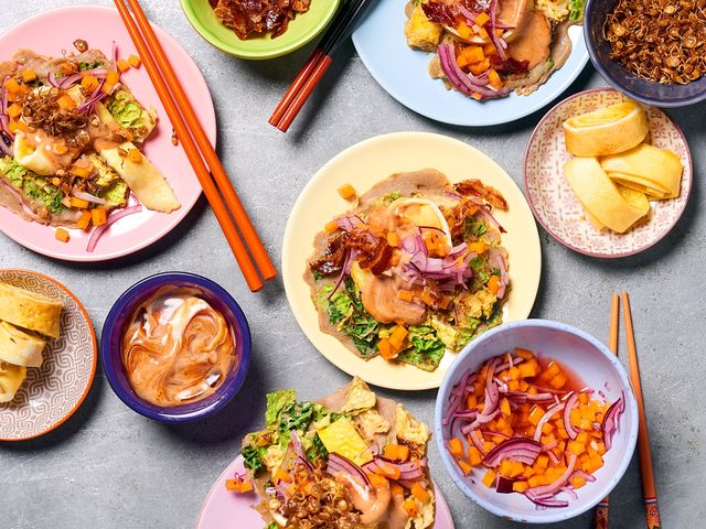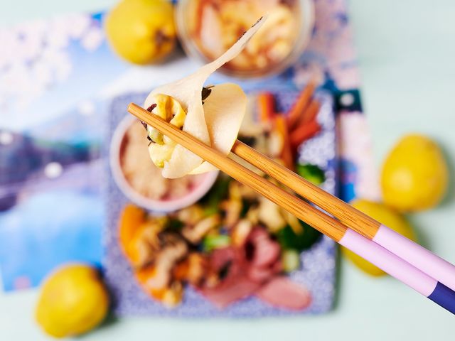 Klingt für Sie nach kulinarischem Widerspruch? Dann probieren Sie mal. Die frische Säure des Kohls und die Kimchi-Gewürze Chili und Knoblauch schmecken nämlich hervorragend zu Nudel und Huhn.