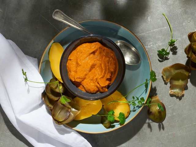 Selbstgemachte Brühe ist gut für Saucen und Risotto. Das dafür ausgekochte Suppengemüse muss aber nicht im Müll landen. Es lässt sich zum Beispiel ein toller Curry-Gemüse-Dip daraus zaubern.