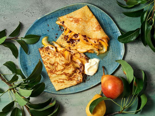 Es lohnt sich, den süßen Duft und Schmelz einer reifen Birne herauszuarbeiten. Unser Kochkolumnist ummantelt die »Königin der Herbstfrüchte« mit einer hauchdünnen Crêpes und verrät auch, wie der Teig wirklich zart wird.