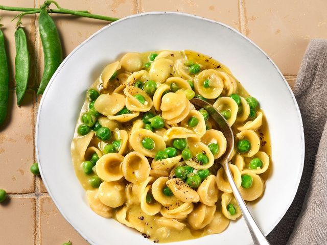 In diesem Nudelrisotto finden Erbsen und Orecchiette ihren Weg in den Kochtopf und auf den Teller. Dabei rettet unser Autor die Erbsenschoten vor der Tonne, indem er sie als aromatische Brühe auskocht – und das Risotto darin badet.