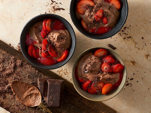 Für diese feine Schoko-Mohn-Mousse mit Erdbeeren braucht unser Kolumnist nur vier Zutaten. Mit ein paar Kniffen gehen diese eine unwiderstehliche nussig-fruchtige Verbindung ein.