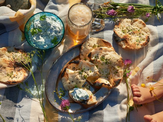 Im ersten Teil seines Höhlenmenschen-Grillmenüs liefert unser Kochkolumnist ein Rezept für Fladen nach Art indischer Naan-Brote, die sich ohne Schnickschnack direkt in der Glut zubereiten lassen. Zum Tunken gibt’s einen frischen Kräuterjoghurt-Dip.