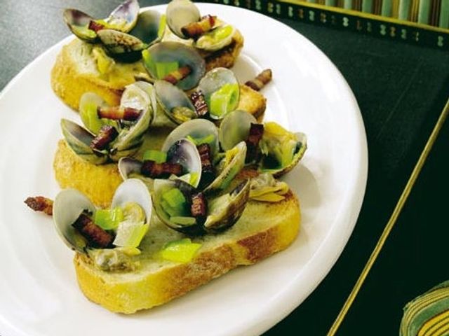 AutorenseiteKerry Heffernan Nimm 3Muscheln mit Speck und Lauch auf ToastKurz und schnell: Rezepte mit nur drei Zutaten. Diese Woche: Manila-Muscheln auf Speck und Lauch.Von Kerry Heffernana