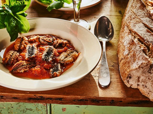 Dieses Rezept für geschmorte Tomatencreme mit Sardinen schmeckt nach Italienurlaub: warm, würzig, wunderbar. Und es lässt sich sogar als schnelles Mittagsgericht zubereiten.