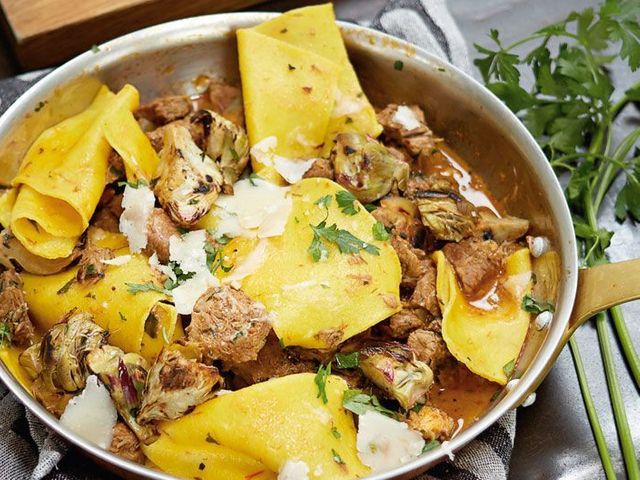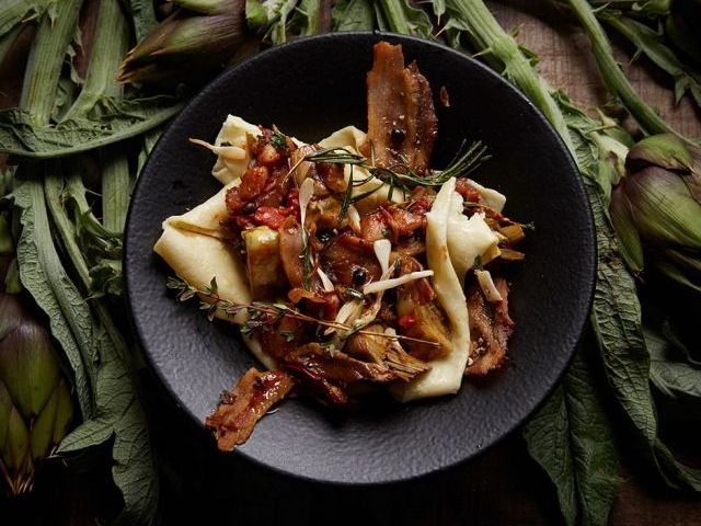 Bitte geben Sie sich bei der Zubereitung der Maltagliati an Artischocke und Schweinebacke keine Mühe. Sonst wird es nämlich nichts.