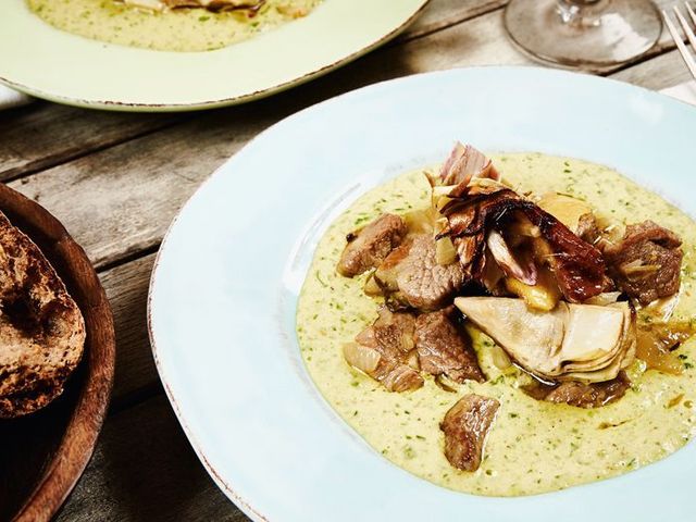 Lammschulter in Champignon-Parmesancreme mit Artischocken