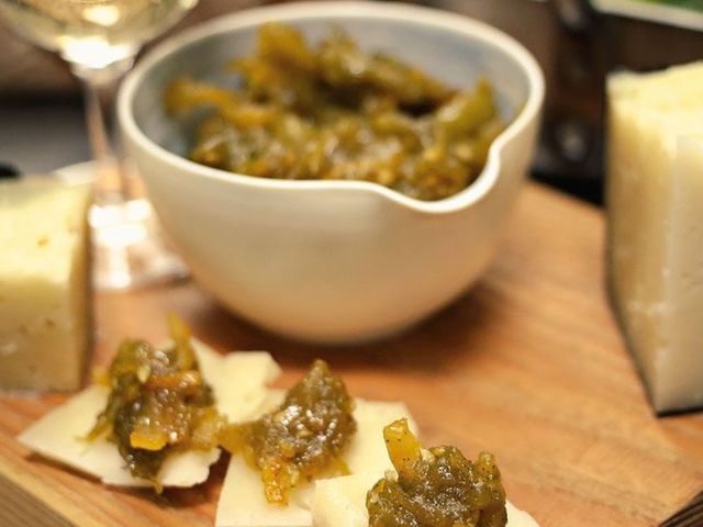 Erst die richtige Konfitüre bringt Käse wirklich zur Geltung. Das Rezept für diese Konfitüre aus grünen Tomaten hat unsere Köchin einst in einem Drei-Sterne-Restaurant ergattert.