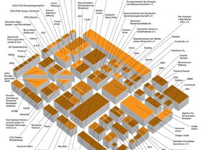 Was so auf Parteitagen läuft, ahnt man. Was niemals gezeigt wird: Am Rande des Geschehens präsentieren sich Autofirmen, Wirtschaftsverbände, Versicherungen und Telefonanbieter. Und die Auswahl verrät einiges über die Parteien und ihre Mitglieder.