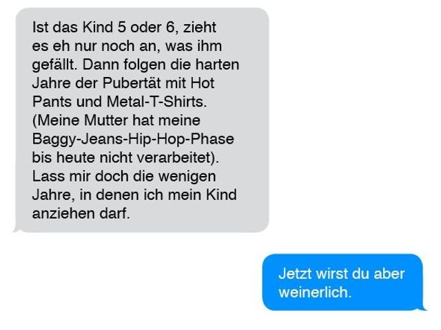 Ein Vater kauft für seine Tochter eine Erdbeermütze. »Die Ärmste«, sagt sein Kollege. Ein Streitgespräch über Kinderkleidung. Und Fußball.
