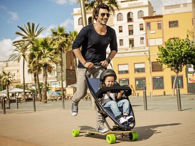 Für sportlich-urbane Väter gibt es jetzt den Buggy mit Skateboard-Anschluss. Um die Geburtenrate in Europa müssen wir uns ab sofort keine Sorgen mehr machen.
