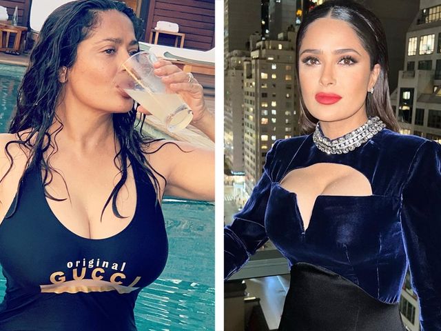 Salma Hayek zeigte immer gern Dekolleté, aber offensichtlich sind ihre Brüste nun größer als früher. Operation? Von wegen, sagt sie, eine ganz natürliche Entwicklung. Endlich eine Hollywood-Schauspielerin, die ihre Menopause nach außen trägt.