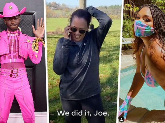 Kamala Harris' Sonnenbrille beim Joggen, ein königliches Vintage-Hochzeitskleid und der Mund-Nasen-Schutz als das unvermeidliche Accessoire des Jahres, in Szene gesetzt von Stars wie Lizzo – das waren die wichtigsten Mode-Erscheinungen 2020.