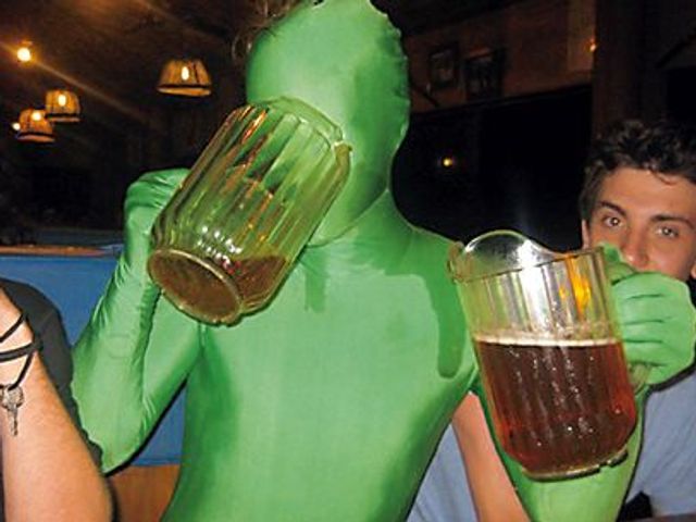 Weil die Bilder vom Saufgelage ja doch im Internet landen, hatten drei Schotten eine geniale Idee: ein Ganzkörperkostüm, in dem man sich alles erlauben kann.