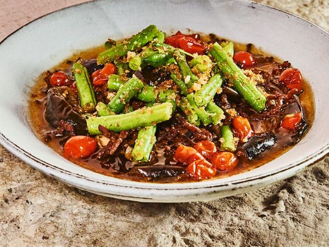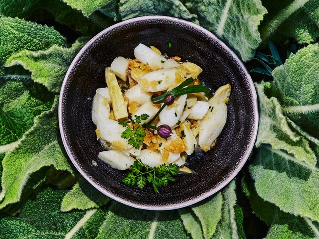 Schnell, aromatisch und gesund: In diesem einfachen Salat trifft Spargel auf Schnittlauch, Kerbel, Estragon und geröstetes Panko-Paniermehl.