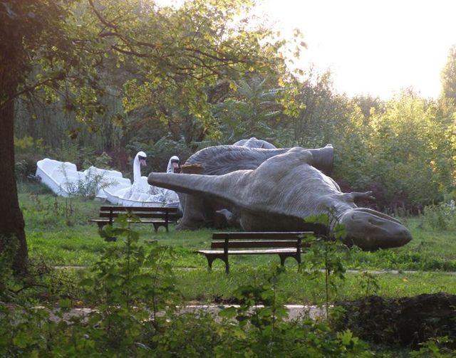 Spätestens beim Anblick der weißen Maskenschwäne kommen einem die Ereignisse vom Aasee in den Sinn: der verliebte schwarze Schwan und der große weiße Tretbootvogel, der nie auch nur das geringste Gefühl erkennen ließ. Der sich von dieser Petra regungslos umturteln ließ. Hier sehen wir ihn, den Schwan mit der Maske, kalt auf ein zu Tode gehetztes Monster blickend, mit einem weiteren seiner Art, vor leeren Zuschauerbänken, einsam, aber voller Mut, jedoch selbst gestrandet im Wald. Seine Gedanken galten nie Petra, sie galten seiner Mission. Dem Schutz Münsters vor urzeitlicher Gefahr.