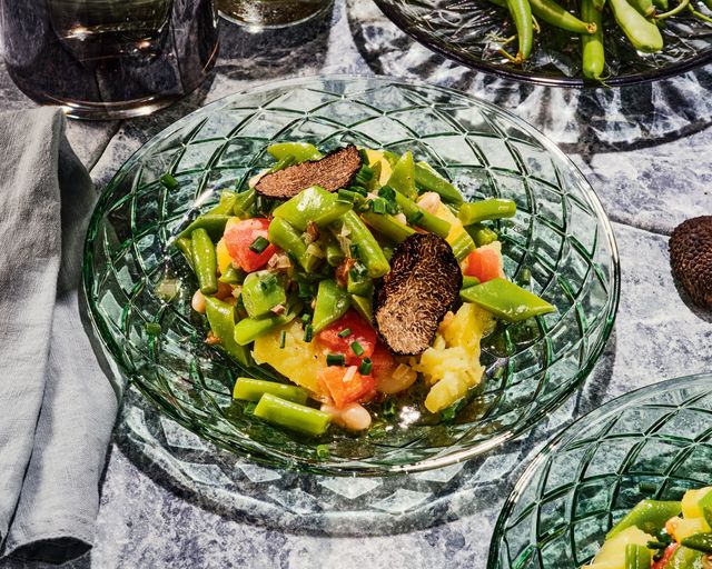 »Für alle, die Bohnen lieben, ist dies ein wunderbar erfrischender Allrounder. Das Ragout passt als Beilage zu Fleisch und Fisch oder wird wie hier zum Sologericht – mit schwarzer Trüffel als Star. Die gesamte Trüffelzeit geht etwa von Oktober bis März.«