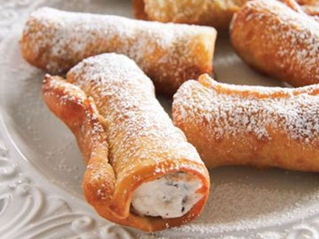 In Palermo werden sie traditionell in kleinerer Ausführung als Cannoncini angeboten. In meiner Familie gibt es, seit ich denken kann, zu jedem feierlichen Anlass Cannoli als Nachtisch. Meine Eltern, beide inzwischen um die neunzig, machen sie immer noch zusammen. Meine Mutter backt und mein Vater bereitet die Füllung zu.