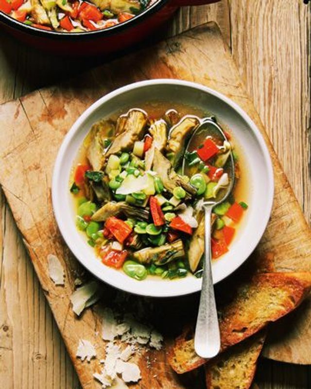 Frühjahrs-Gemüsesuppe mit jungen Bohnen und