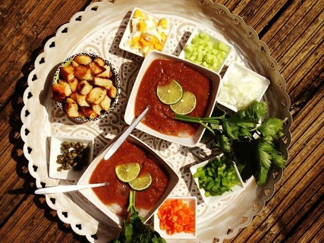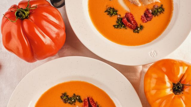 »Wenn der Sommer Hitze schickt, ist Gazpacho die richtige Antwort. Sie sollte zum überwiegenden Teil aus sehr reifen Tomaten bestehen. Wichtig sind auch ein guter Schuss Essig und reichlich Olivenöl. Essig weckt die Suppe auf, Olivenöl macht sie geschmeidig.«