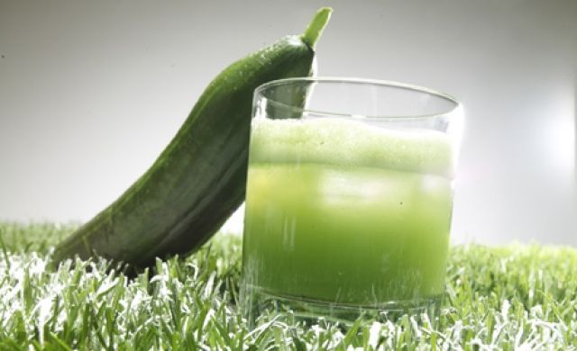 Eine Gurke entsaften – nicht mixen! –, bis die gewünschte Menge Saft entstanden ist. Alle Zutaten mixen, in 4 Tumbler gießen, mittig jeweils einen golfballgroßen »Eisball« platzieren.