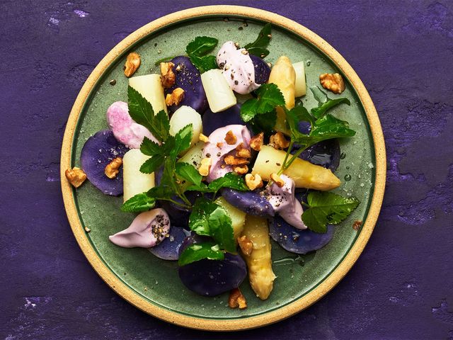 »Dieser Salat ist ein Lieblingsgericht meiner Tochter – und eine der wenigen Speisen, die sie sehr bald selbst zubereiten konnte. In ihrer Studentenzeit, als das Geld manchmal knapp war, hat sie Cashewnüsse statt der etwas teureren Pinienkerne verwendet. Und wenn keine Rosinen vorrätig waren, hat sie Backpflaumen klein geschnitten und dazugegeben. Am besten schmeckt der Salat natürlich lauwarm. Das Filet ist schön weich. Dazu servieren Sie zum Beispiel ofenfrisches Baguette: Damit lässt sich die Marinade herrlich auftunken.«