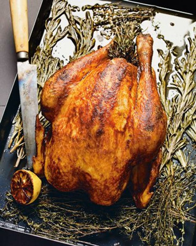 Weißwein mit beiden Ölen, Senf, Paprikapulver und Chilischoten in einer Schüssel gut verrühren. Zitronen halbieren, mit einer Gabel mehrfach einstechen und ein wenig andrücken, sodass sie gut Saft abgeben können. Poularde mit Knoblauchzehen, Zitronen, Kräutersträußchen und Lorbeer füllen. Anschließend die angerührte Marinade in die Poularde gießen, den Rest mit einem kleinen Gefäß über das Geflügel gießen, sodass das Fleisch von allen Seiten gut bedeckt ist und alles gleichmäßig mariniert wird. Sollte die Menge der Marinade nicht ausreichen, Rezeptmengen entsprechend strecken. Die Poularde 24 Stunden mit Klarsichtfolie abgedeckt marinieren, danach auf ein Backblech geben. Sie können sie noch mit etwas Paprika und ganz wenig Chilipulver bestreuen, die Haut wird dadurch knuspriger und der leicht scharf-peppige Geschmack verstärkt. Mit wenig Salz würzen und im vorgeheizten Backofen bei 200 Grad etwa 30 bis 45 Minuten braten; währenddessen immer wieder mit dem Bratensatz beziehungsweise der Marinade übergießen. Als Beilage eignet sich hervorragend Petersilienpüree.