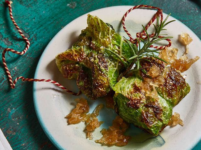 3. Den Trevisano mit der Hälfte der Butter (30 g) und dem Zucker in der Pfanne anschwitzen, mit Rot- und Portwein ablöschen und alles zirka 10 Minuten dünsten, bis der Trevisano gar ist und der Rot- und Portwein etwas reduziert sind. Mit Salz und etwas Zitronensaft abschmecken, die restliche kalte Butter zur Bindung langsam einrühren.