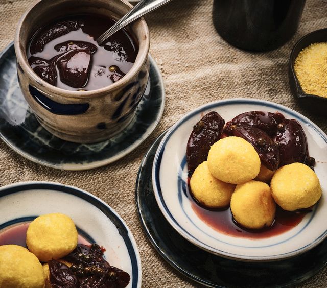 »Unbedingt gleich große Knödel drehen, damit im Backofen alle zur selben Zeit fertig werden. Alternativ kann man sie auch 20 Minuten in leicht siedendem Wasser halb zugedeckt kochen. Pflaumenpfeffer am besten auf Vorrat machen. Er passt auch gut zu Weichkäse.«
