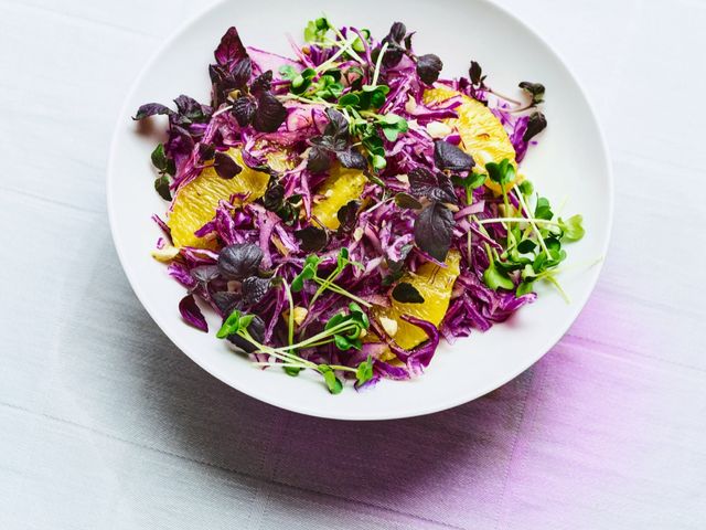 - 2 Handvoll gezupfter gemischter Salat (etwa Frisée, Portulak, Eichblatt) Salat